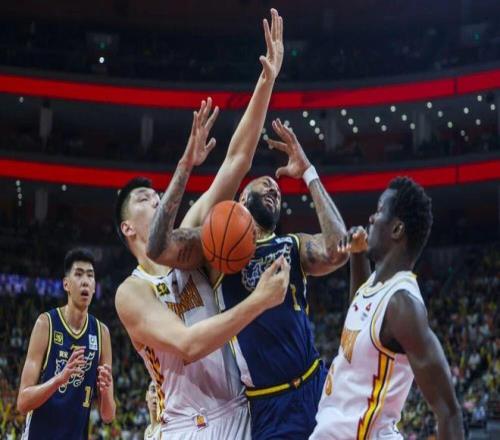 4月19日,广东东阳光队球员吉伦沃特(右二)在CBA比赛中。新华社发