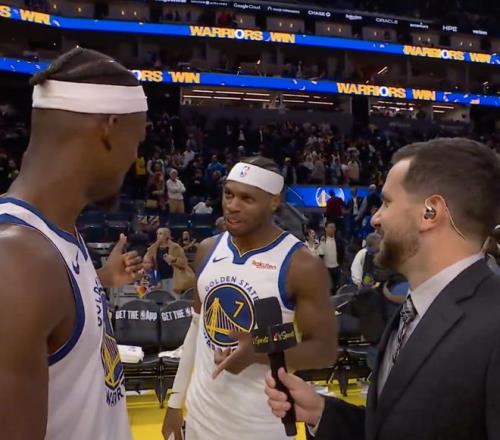 赛后,本场发挥出色的巴特勒接受了场边记者的采访,希尔德看到后,一脸坏笑走过来,指着巴特勒调侃道:“他们怎么选你采访啊,真是不懂球。”
