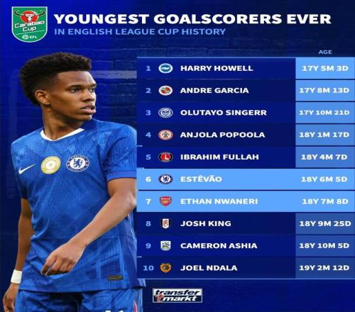 英联杯历史最年轻进球榜