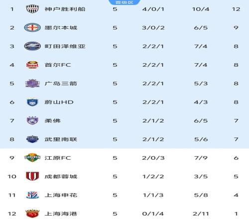 本轮三支中超球队均未能获胜,目前积分榜上,成都蓉城凭借本轮拿到的1分,积5分反超申花升至倒数第3,申花则跌至倒数第2,上海海港1分继续垫底。颇为讽刺的是,在国内联赛中敢于亮剑的冠军海港和亚军申花,却只能在亚冠赛场亮贱。尤其是中超三连冠的海港,5轮过后仅积1分,真是光屁股推磨---转着圈丢人。目前看,海港亚冠副班长的位置,或许无人撼动了。