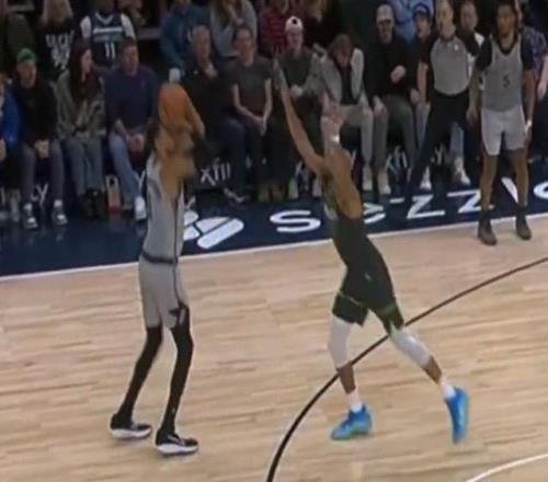 北京时间1月12日,NBA常规赛,马刺vs森林狼的比赛正在进行中。