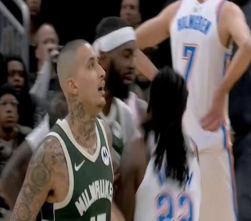 第三节比赛过程中,波蒂斯肘击放倒华莱士被吹罚一级恶意犯规,华莱士进行推搡反击被吹罚技术犯规。