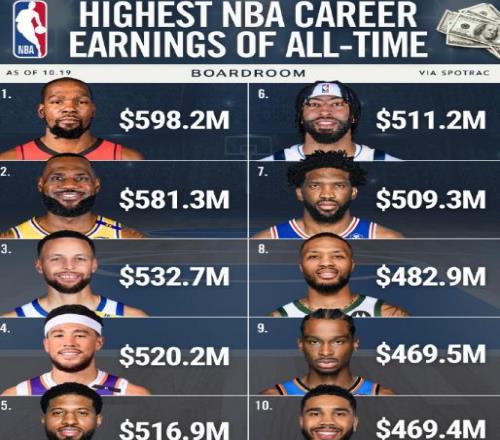 10月20日,根据美国薪资网站Spotrac数据,刚刚和火箭完成提前续约的杜兰特,职业生涯总薪水达到5.982亿美元,超越詹姆斯成为历史第一人!众所周知,在过去很长一段时间,都传言新赛季可能