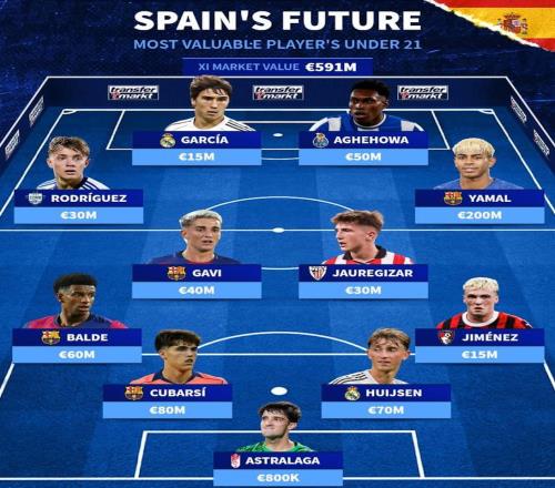德转列西班牙最贵U21阵容:亚马尔领衔,巴萨4人入选,皇马2人
