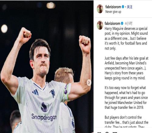 雷速体育10月22日宣 今天著名转会记者罗马诺在社媒发表长文,谈到了曼联中后卫马奎尔。罗马诺对马奎尔大加赞扬,表示马奎尔虽然一直遭遇谩骂等不公正对待,但他始终保持平和,坚持